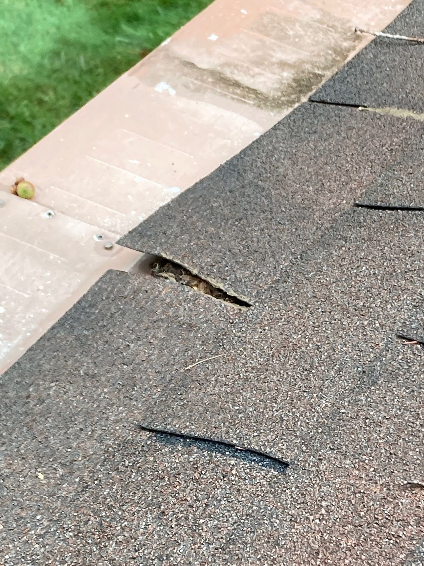 • Worn and lifted shingles showing weather exposure